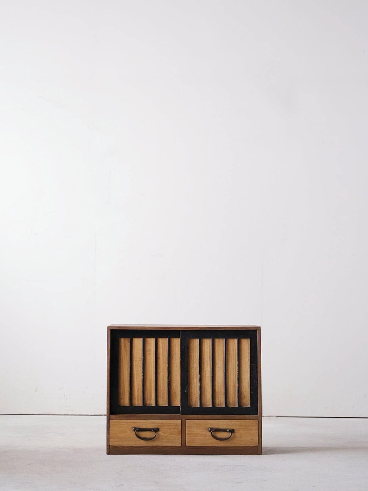 縦桟の戸と、引出しが2杯、戸の中にも3杯ある構成です。
