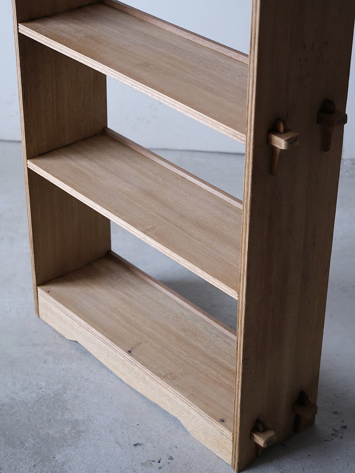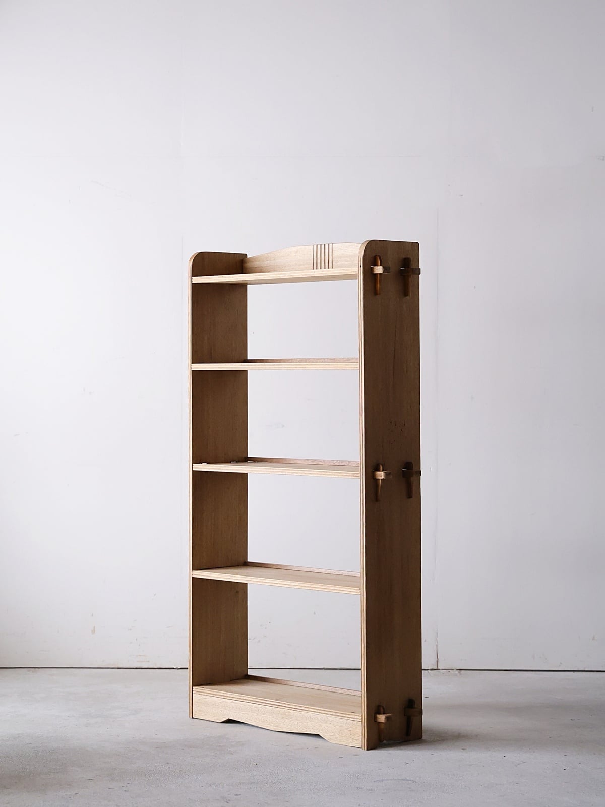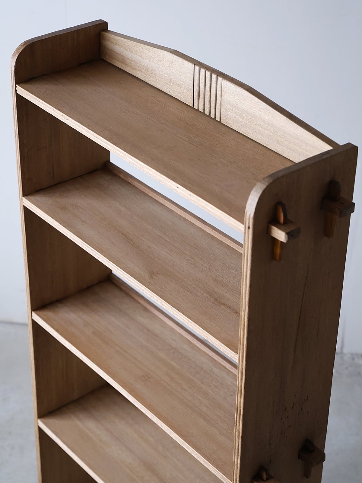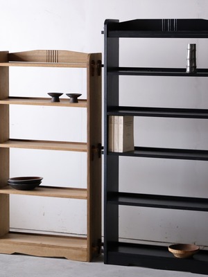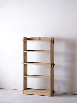 木地色の楔式の本棚。
