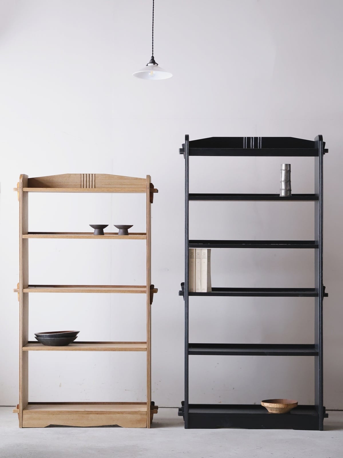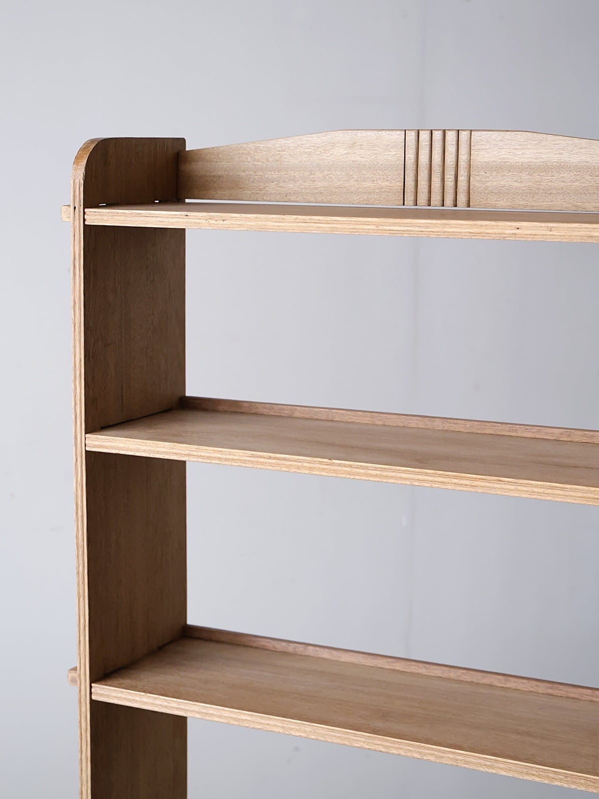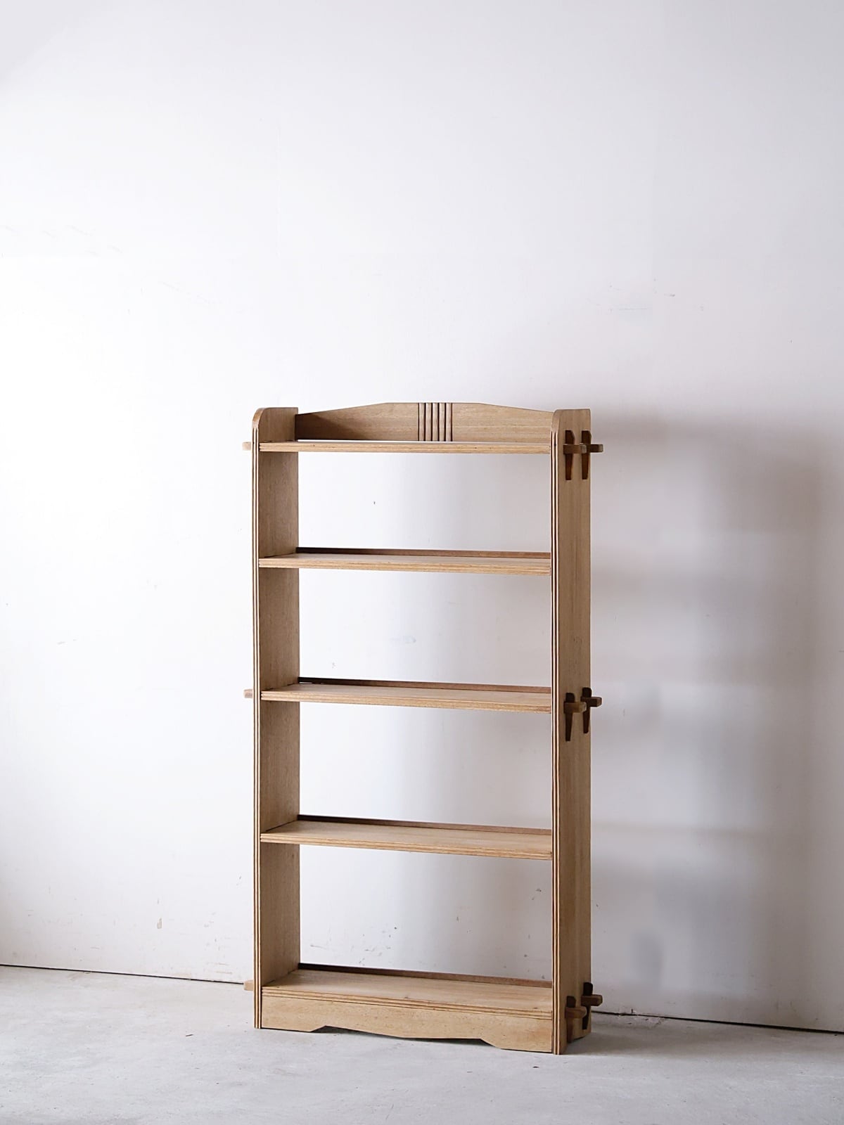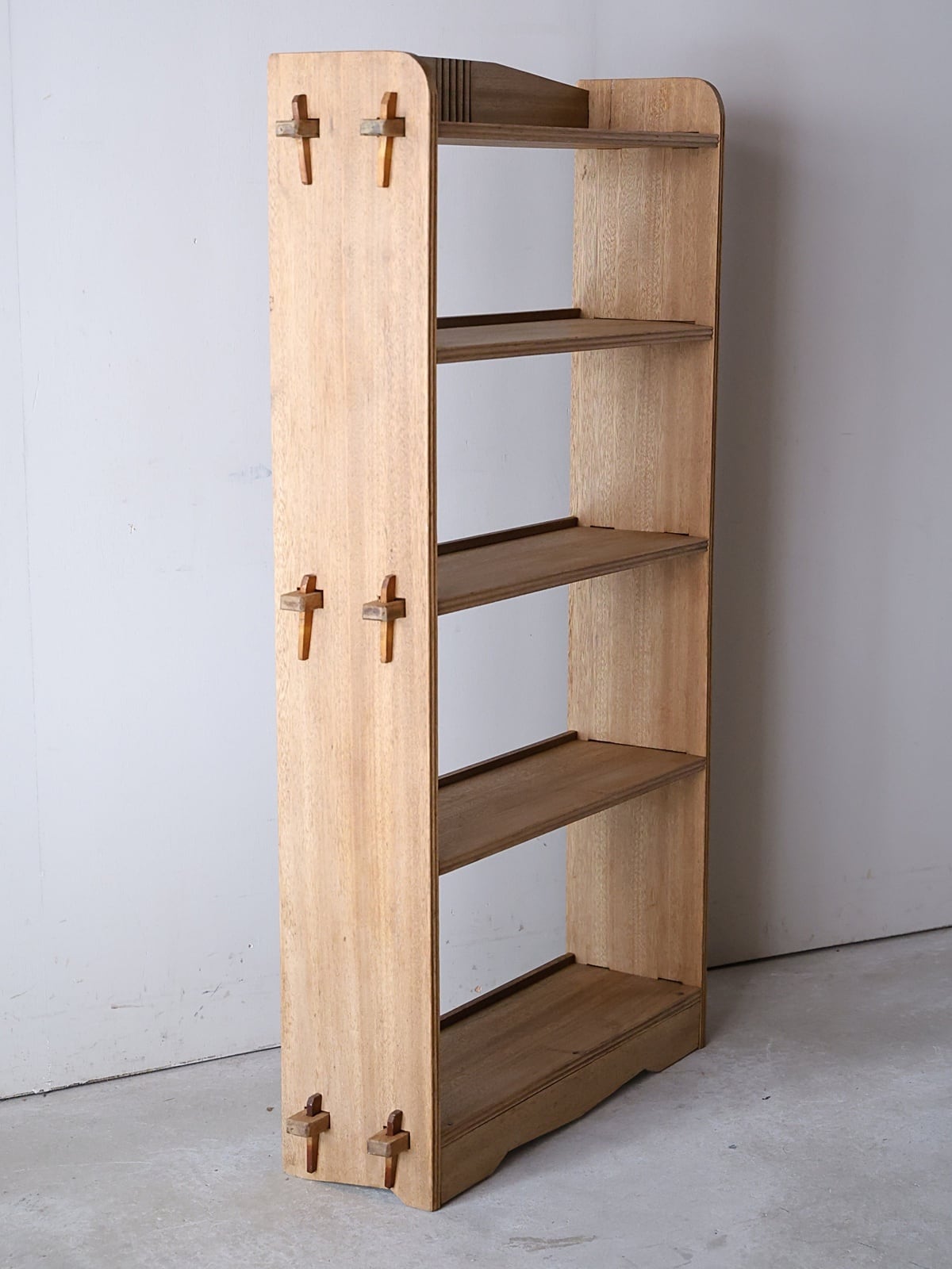 木地色の楔式の本棚。