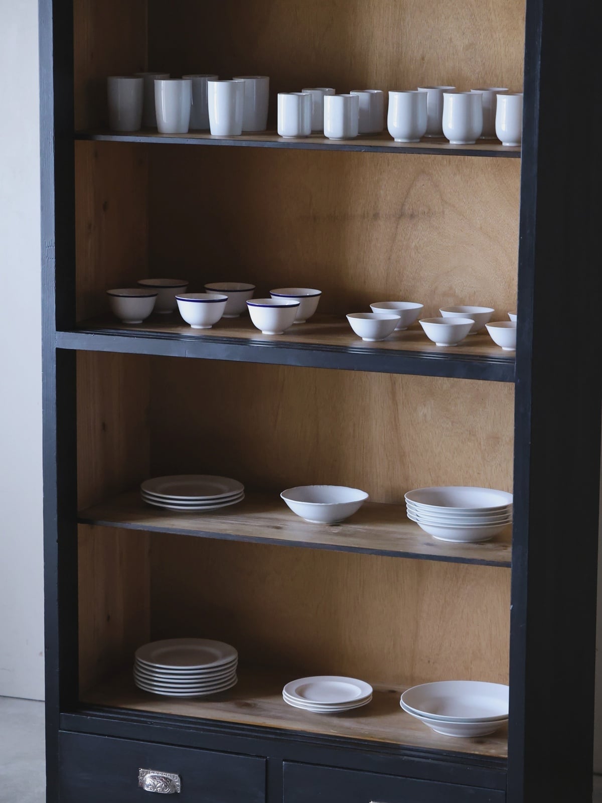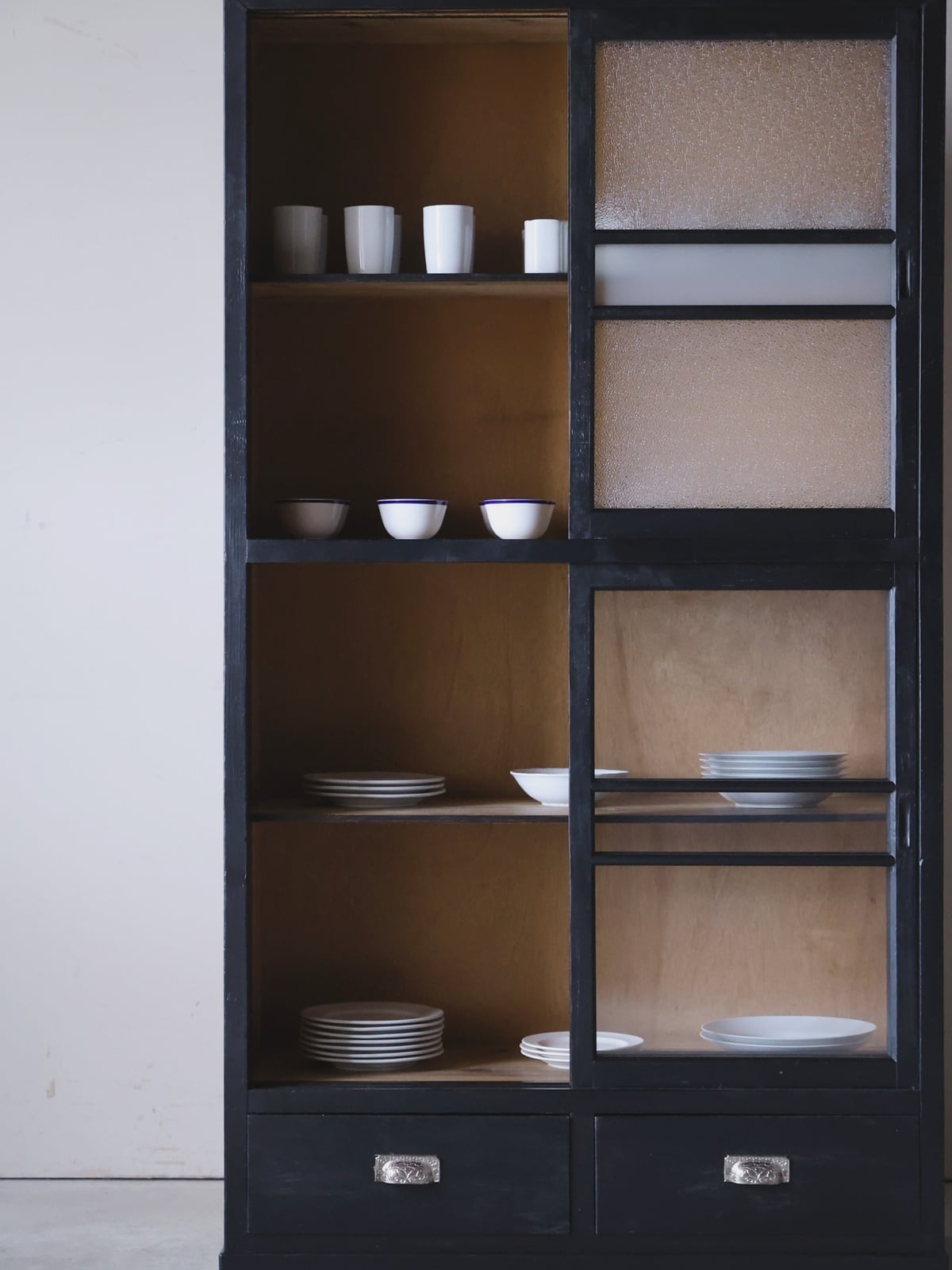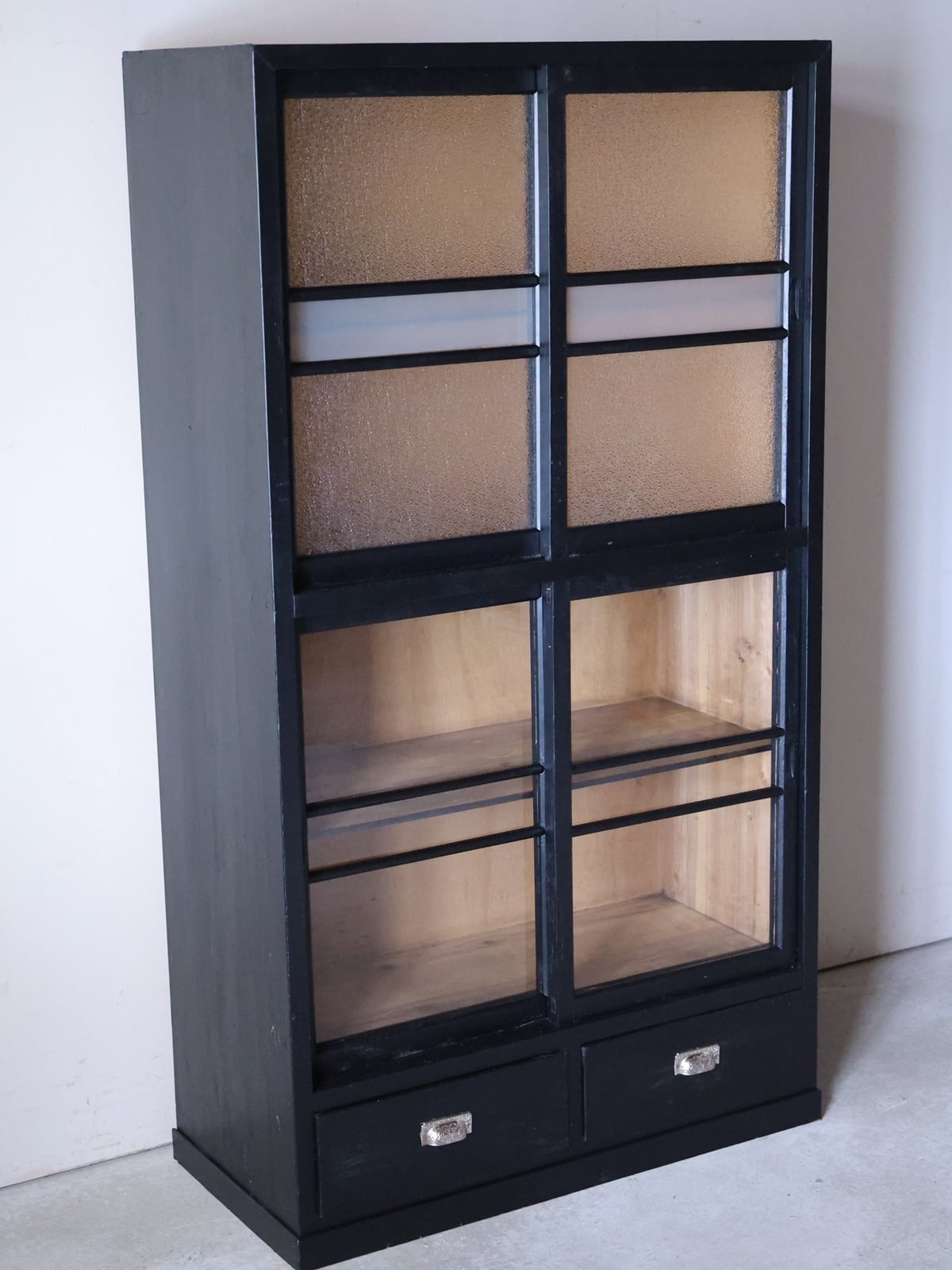 黒塗りのガラス戸棚。