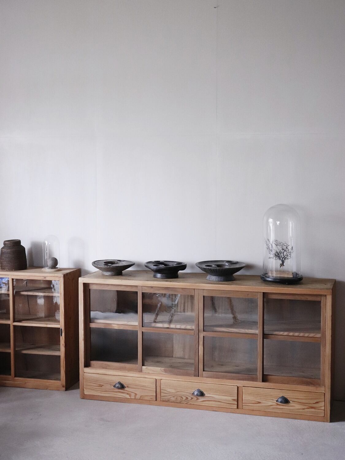 横長のガラス戸棚。