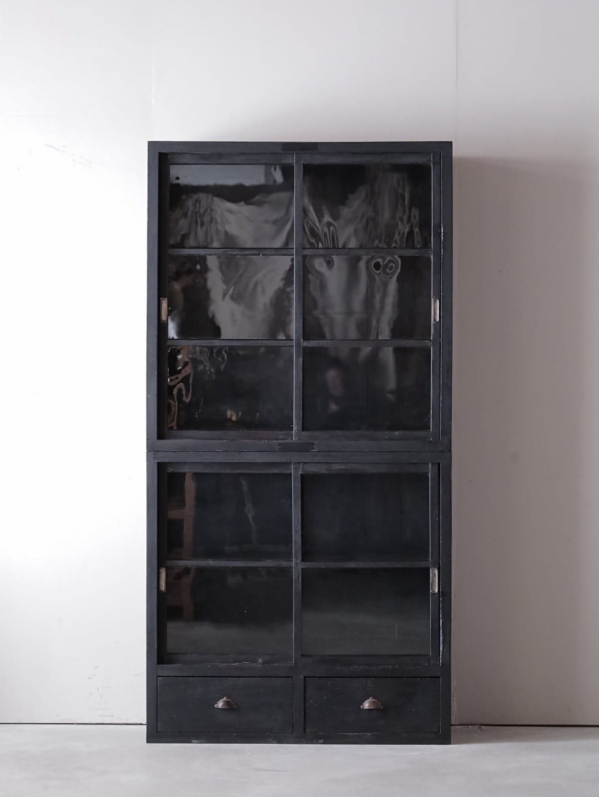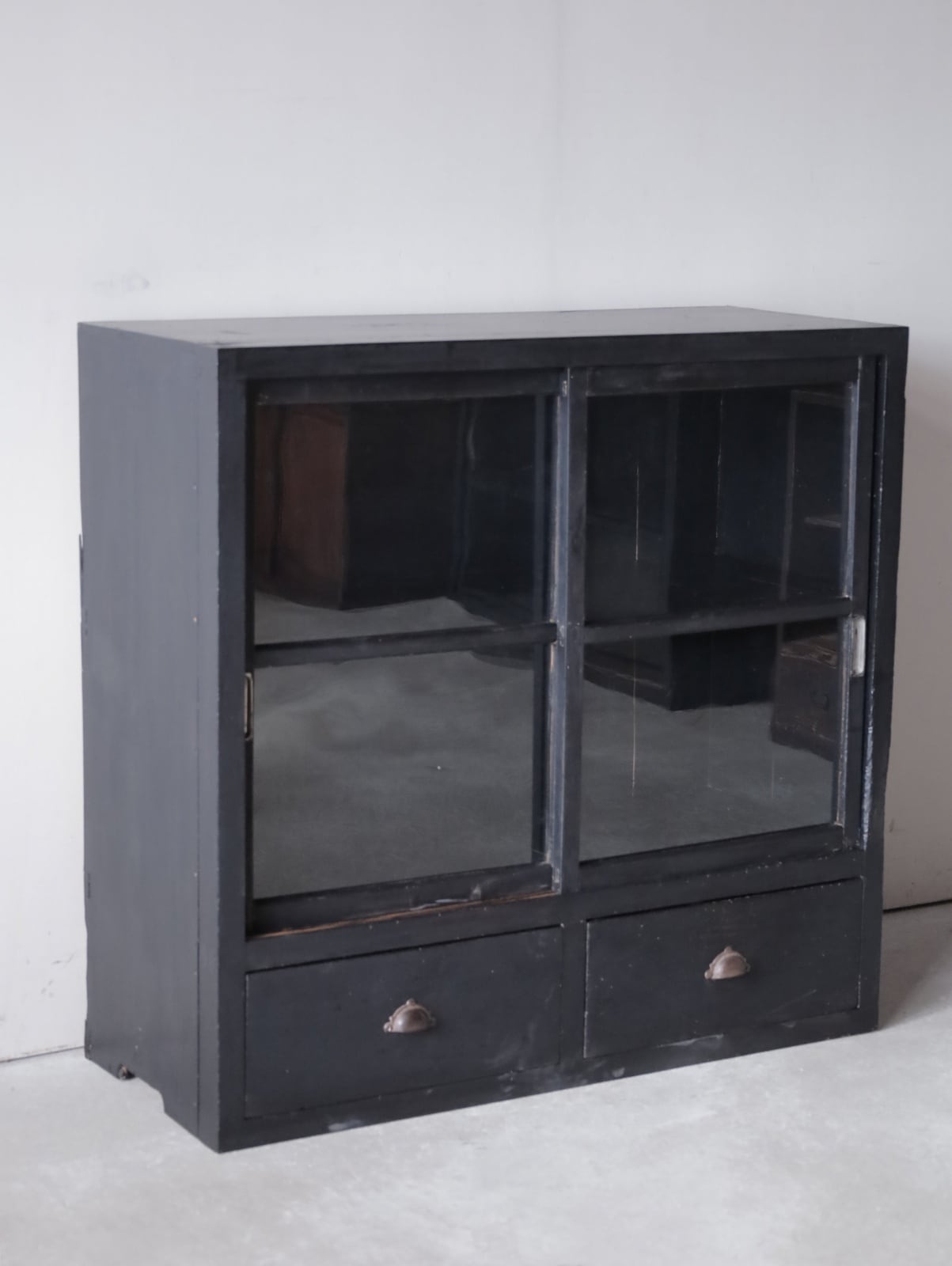 黒いガラス戸棚。(引出のあるタイプ)